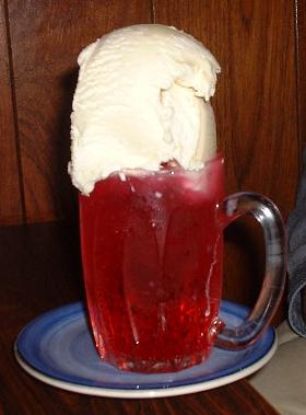緑色を想像していたが赤かった。イチゴシロップ?という味。非常に甘い。クリームをソーダに溶かすとマイルドになる。