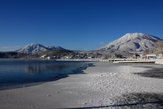 Front view of Hotel Fuyosou. Hotel Fuyosou is right on Lake Nojiri. We're open all seasons. Use our private docks for fishing.