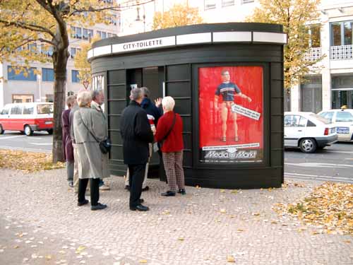 有料トイレボックスです。 1回ごとに便器を丸ごとすっかり 洗浄してしまうので清潔です。 |