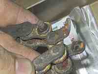 まず5**用のチェーンカッターを使って無理やりピンを抜きます。 (4**の)小さな穴に無理やり(5**の)太いのを差し込んでいくので、入れすぎると壊れちゃいます。具合をみつつ慎重に。 先っちょが入ったら一度抜いてやりましょう。抜けなくなったら困りますから。 まだ刺さったままになっているので、手でこねくり回してやりましょう。 壊れちゃいましたが当初の目的は果たしました(*´Д`*)はぁはぁ |