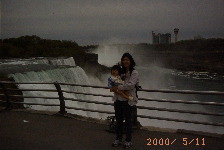 | 2000年5月11日 学校の授業が終わり、卒業式まで休みなので、お友達のOさんファミリーと一緒にナイアガラへ1泊で出かけることにしました。2月に産まれたばかりの可愛い男の子が一緒なので、後ろにチャイルドシートを2つ積んでの旅。ナイアガラはクリーブランドから車でノンストップ約4時間弱。手軽に行けるところです。私はナイアガラに行くのは7年ぶり。以前両親を連れて訪れたことがあります。今回はOさんの赤ちゃんHくんのパスポートがないこともあり、カナダ側には渡らないことにしました。