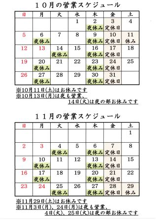 - 10月11日(土)はお休みです