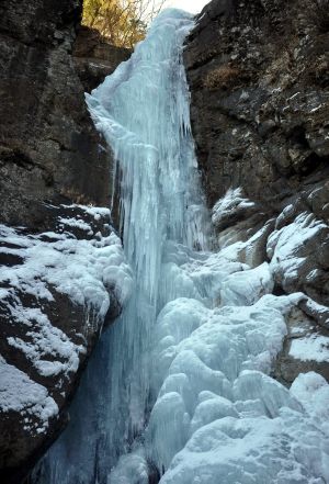 途中、左岸の沢が氷瀑になっていたので、先に滝下へ行き、撮影していく。落差は8Mくらいか。