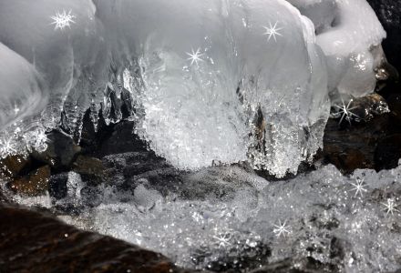 太陽が反射する氷を撮ったり、形が面白い氷などを撮影しながら、のんびり下る。