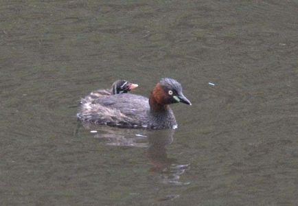 カイツブリの子供が一羽出てきました。
