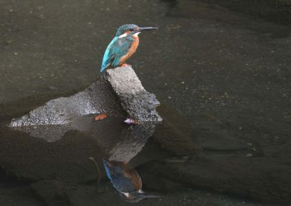 小雨のとき、カメラを持たず歩いて見ると、カワセミがポツンと静かに止まっていました。