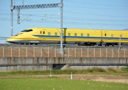 予定時間になり、待ち構えていると、下りのドクターイエローがやってきました。