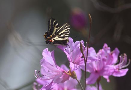 ここにもミツバツツジがあり、ツツジや足元に止まる。