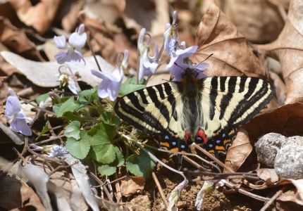 歩き始め、最初の尾根に出ると、早くもギフチョウが出迎えてくれる。