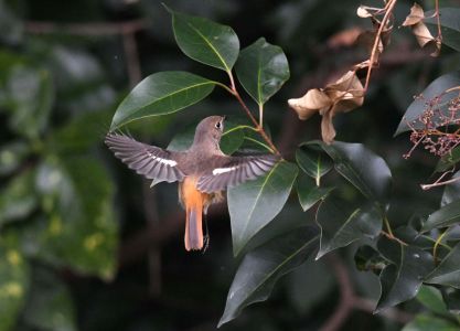 ジョウビタキの雌が時々ネズミモチの実のところでホバをするので狙ってみたところ、