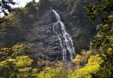 さらに登ると、見上げる高さから落ちる不動滝がドーンと出てくる。