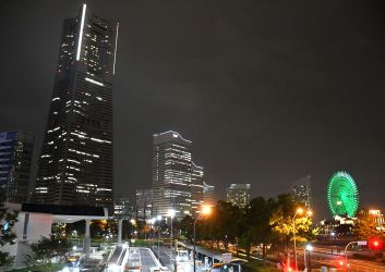 駅前に出ると、丁度雨が降ってきた、急いでみなとみらいの夜景を撮影する。